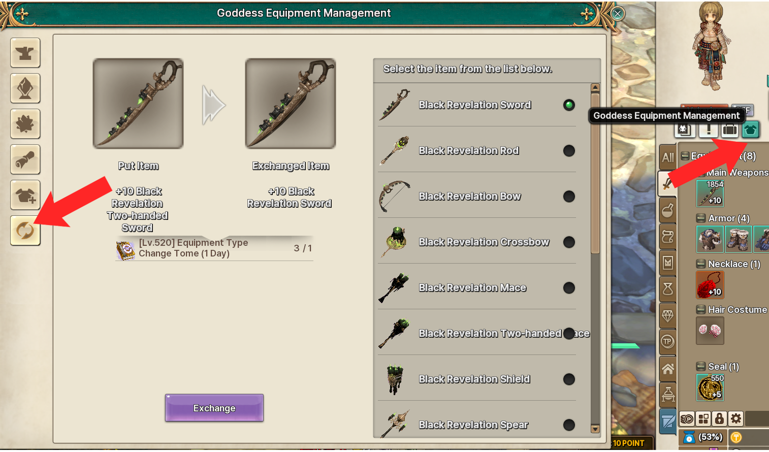 Equipament Type Change. Esse livro serve para você trocar o tipo do seu equipamento, caso tenha escolhido algum errado para sua build. Para poder usar ele. Esse item pode ser adquirido também na loja de TOS Coin ( que fica ao norte de Klaipeda).