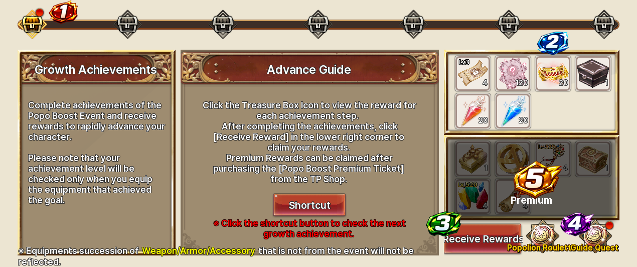 Ele funciona como um passe de batalha, onde você completa tarefas para liberar etapas e receber recompensas. A principal recompensa ao concluir o Popo Boost é a possibilidade de selecionar uma classe premium. O evento também oferece itens para acelerar o progresso, como materiais, pontos de atributos entre muitos outros itens!