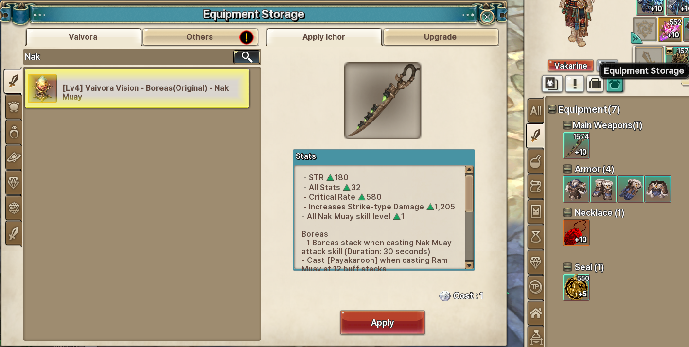 Nesse caso, eu peguei a Vaivora do Nak Muay, do Templar e 2x Coordination. Verifique sempre certinho para pegar as Vaivoras correspondente a sua Build!