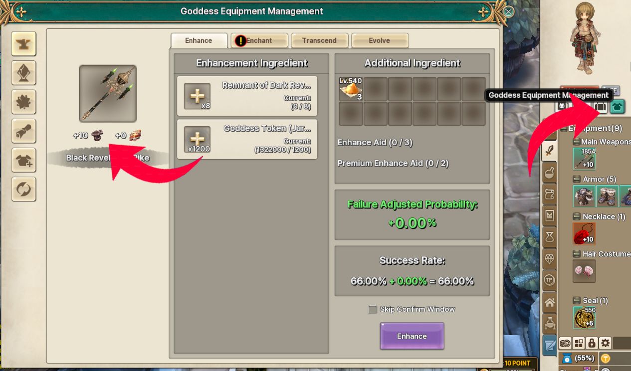 (2) No seu inventário, consuma as moedas das deusas disponíveis, assim você conseguirá comprar os Skill Attributes.