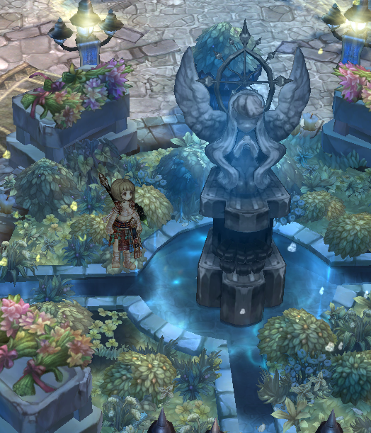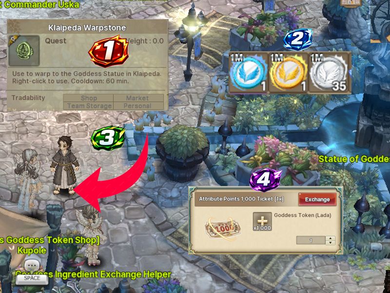 (3) No lado esquerdo da fonte, fale com essa NPC, é nela que você vai poder escolher a loja referente a moeda e poder comprar os Attribute Points e outras coisas.